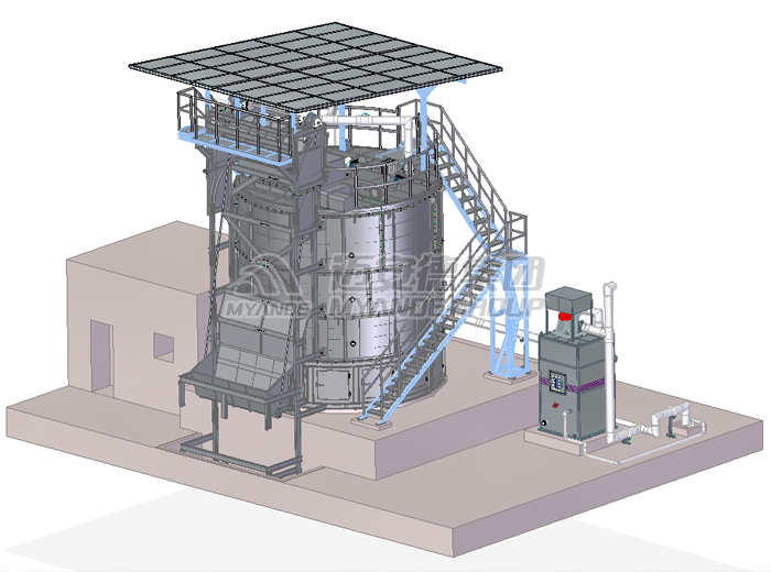 傳統平面流程改為豎向立體流程,原料提升至立式結構頂部,自上而下完成投料、發酵、出料過程。