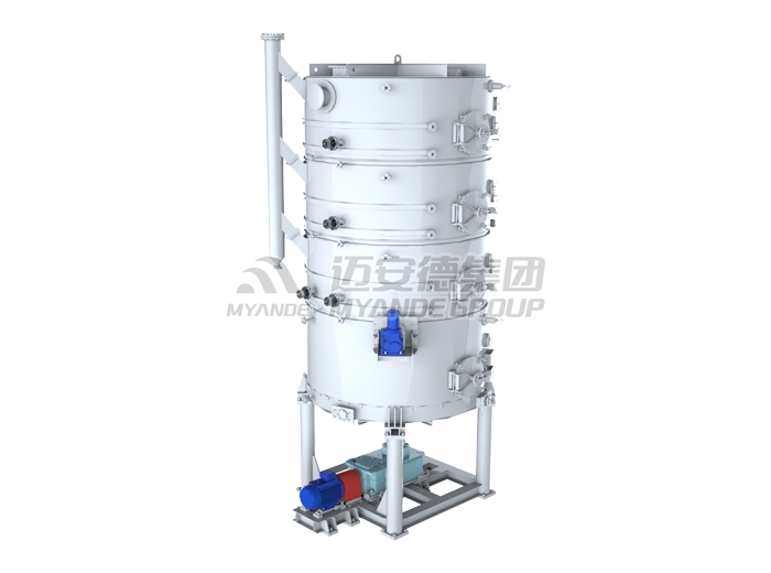 在發酵過程中,自動通風、控溫、控濕,來相對精確控制發酵的環境,從而滿足曲霉、芽孢、酵母等好氧菌的生長,促進好氧菌在生長過程中代謝出代謝產物,同時更好的作用于發酵底物。 接種混合后的物料輸送至發酵塔內,大臂正向旋轉自動裝料,料層高度可根據生產工藝要求布料,保證料層高度均勻。發酵結束后,大臂反向旋轉自動卸料,通過中心卸料門出料,發酵塔有自動控溫控濕系統,保證發酵過程的通氧、溫度及濕度,同時在發酵過程中可實現自動翻料。