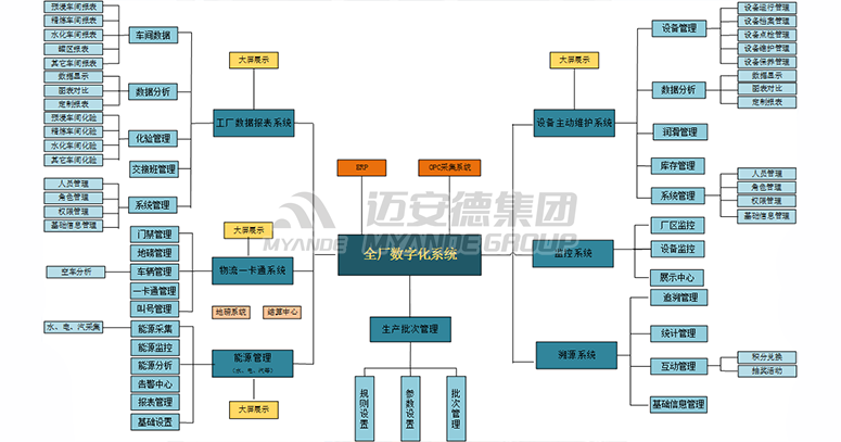 • 邁安德智能化工廠系統(tǒng)在利用工廠原有的基礎(chǔ)自動化、過程自動化、MES、ERP到?jīng)Q策支持的整體信息化體系架構(gòu)的同時,協(xié)同辦公自動化(OA),結(jié)合4G、5G移動互聯(lián),大數(shù)據(jù)智能算法等先進(jìn)互聯(lián)網(wǎng)技術(shù),從全流程大數(shù)據(jù)質(zhì)量管控、全生命周期數(shù)字化以及供應(yīng)鏈互通互聯(lián)等方面進(jìn)一步優(yōu)化補充,實現(xiàn)企業(yè)的智能制造。